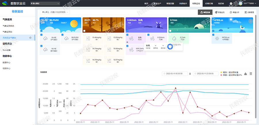 4、超限預(yù)警設(shè)置:用戶可預(yù)置常用作物報(bào)警配置,設(shè)置最低最高超限值,平臺(tái)可自動(dòng)進(jìn)行數(shù)據(jù)預(yù)警分析。